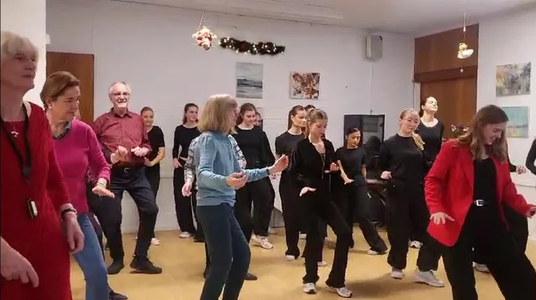 | Wer hätte gedacht, dass wir am Ende alle (na ja: fast alle…) aufgestanden sind und fünf Minuten aktiven Zumba-Tanz zu wilden Hip-Hop-Melodien „aufgeführt“ haben? Bewirtet und weihnachtlich beschmückt wurden wir in diesem Jahr in der Dürenstraße von den Mitarbeiterinnen und Mitarbeitern der Offenen Tür. Ihnen, unseren beiden Organisatorinnen Marianne und Sylvie und allen, die zum Gelingen des Festes beigetragen haben, ein großes Dankeschön! |